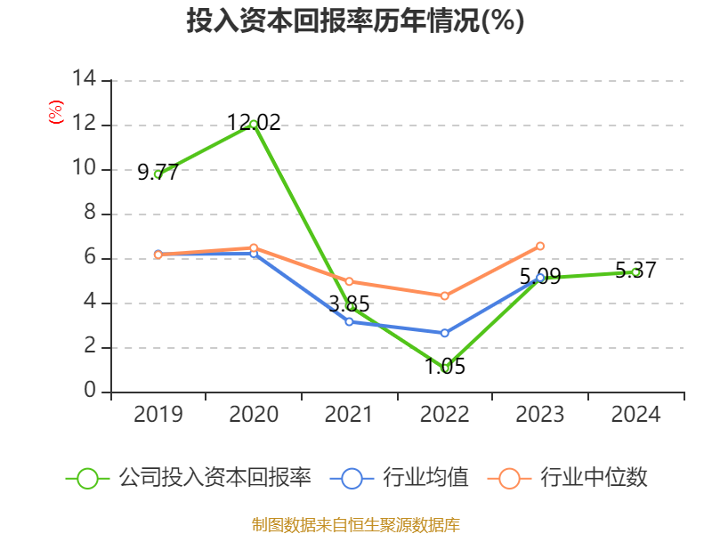 数据显示,2024年公司加权平均净资产收益率为8.23%,较上年同期上升1.3个百分点。公司2024年投入资本回报率为5.37%,较上年同期上升0.28个百分点。