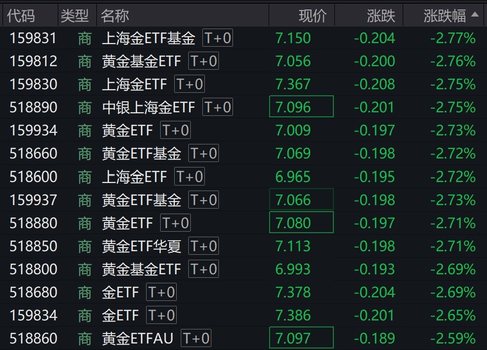 线上配资股票 黄金价格触及近一个月低点,商品黄金相关ETF跌超2%