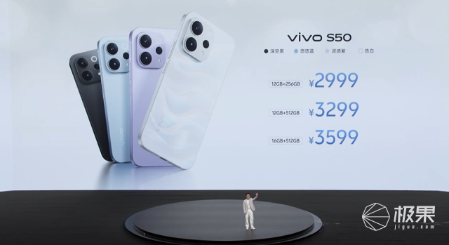 最后就是价格环节了!vivo S50:12GB+256GB售价2999元;12GB+512GB售价3299元,16GB+512GB售价3599元。