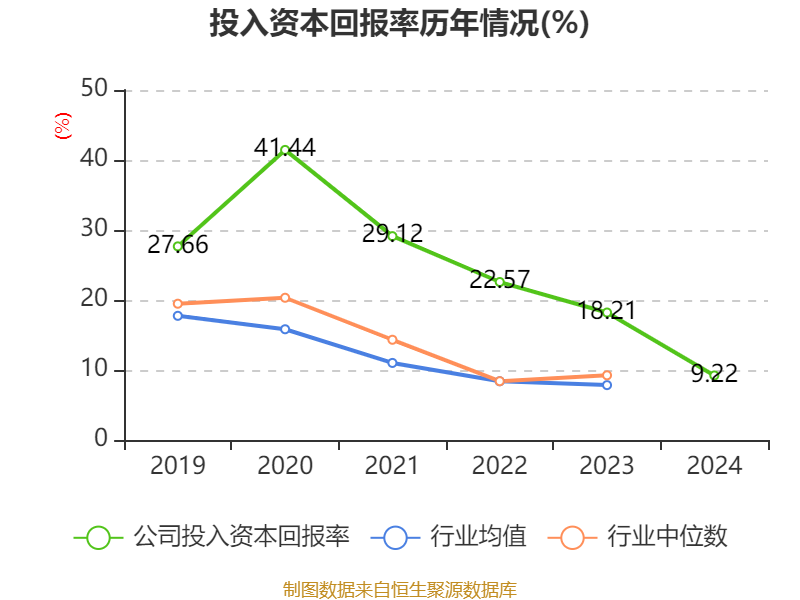 数据显示,2024年公司加权平均净资产收益率为12.28%,较上年同期下降6.99个百分点。公司2024年投入资本回报率为9.22%,较上年同期下降8.99个百分点。