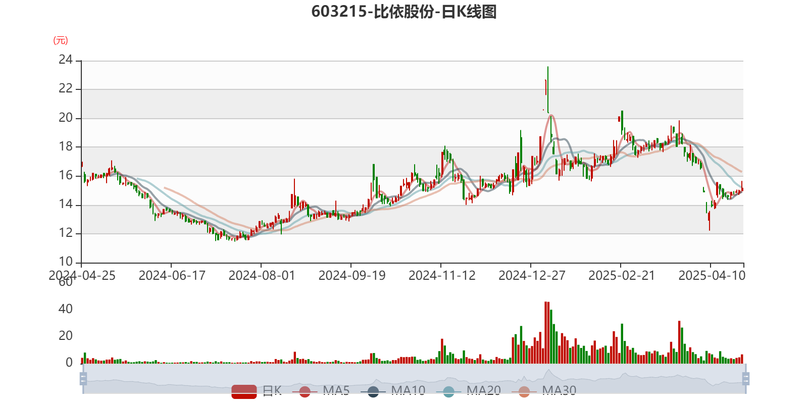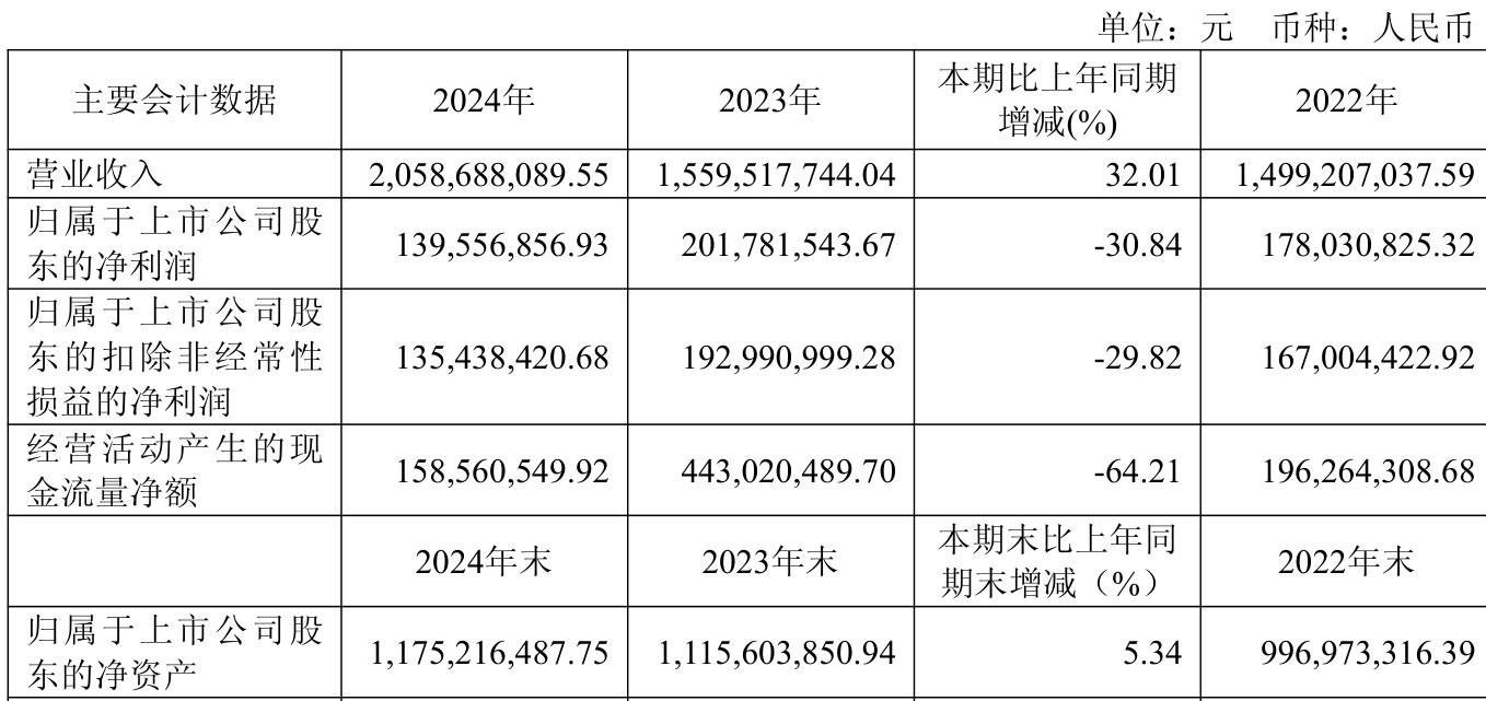 中证智能财讯比依股份(603215)4月25日披露2024年年度报告。2024年,公司实现营业总收入20.59亿元,同比增长32.01%;归母净利润1.40亿元,同比下降30.84%;扣非净利润1.35亿元,同比下降29.82%;经营活动产生的现金流量净额为1.59亿元,同比下降64.21%;报告期内,比依股份基本每股收益为0.75元,加权平均净资产收益率为12.28%。公司2024年度分配预案为:拟向全体股东每10股派现3元(含税)。
