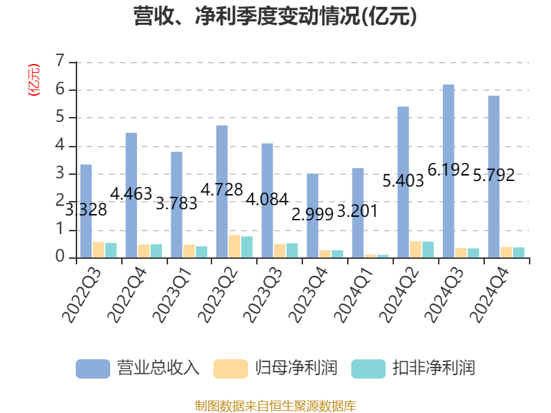 年报显示,2024年末的公司十大流通股东中,新进股东为广东省叁号职业年金计划、中国国际金融股份有限公司、全国社保基金六零四组合、MORGAN STANLEY & CO. INTERNATIONAL PLC.、宁波华桐创业投资管理有限公司-宁波华桐恒越创业投资合伙企业(有限合伙),取代了三季度末的刘佳沛、沈思思、华杉价值挖掘1号私募证券投资基金、王榕蓉、万观钜德价值驱动十三号私募证券投资基金。在具体持股比例上,杭州远宁荟智投资管理合伙企业(普通合伙)-杭州远宁睿鑫创业投资合伙企业(有限合伙)持股有所上升,宁波比依企业管理合伙企业(有限合伙)、王菊芬、郭爱萍、海通证券股份有限公司持股有所下降。