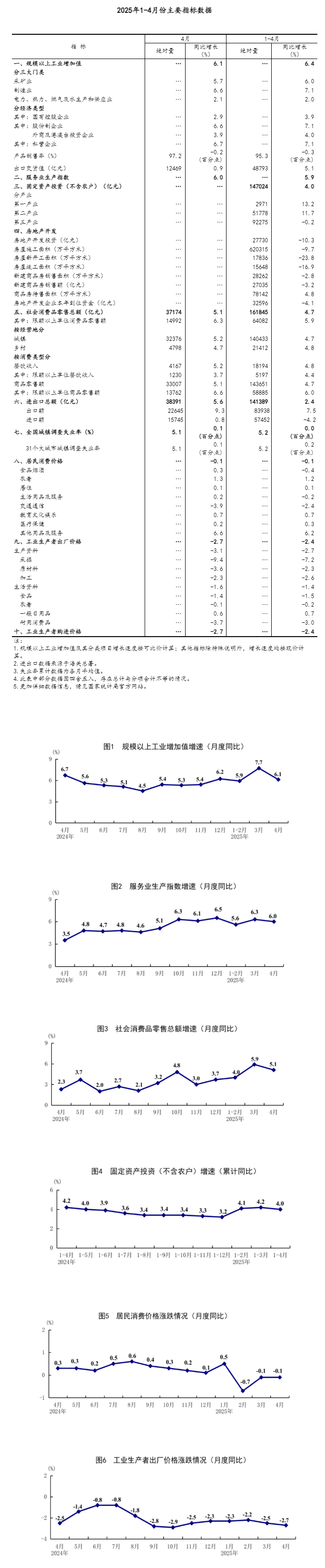 总的来看,4月份,外部冲击影响加大,但宏观政策协同发力,主要指标平稳较快增长,国民经济延续向新向好态势。也要看到,外部不稳定不确定因素仍然较多,国民经济持续回升向好基础还需进一步稳固。下阶段,要坚持以习近平新时代中国特色社会主义思想为指导,坚决贯彻落实党中央、国务院决策部署,坚持稳中求进工作总基调,完整准确全面贯彻新发展理念,加快构建新发展格局,统筹国内经济工作和国际经贸斗争,坚定不移办好自己的事,坚定不移扩大高水平对外开放,着力稳就业、稳企业、稳市场、稳预期,扎实推进高质量发展,推动经济持续回升向好。